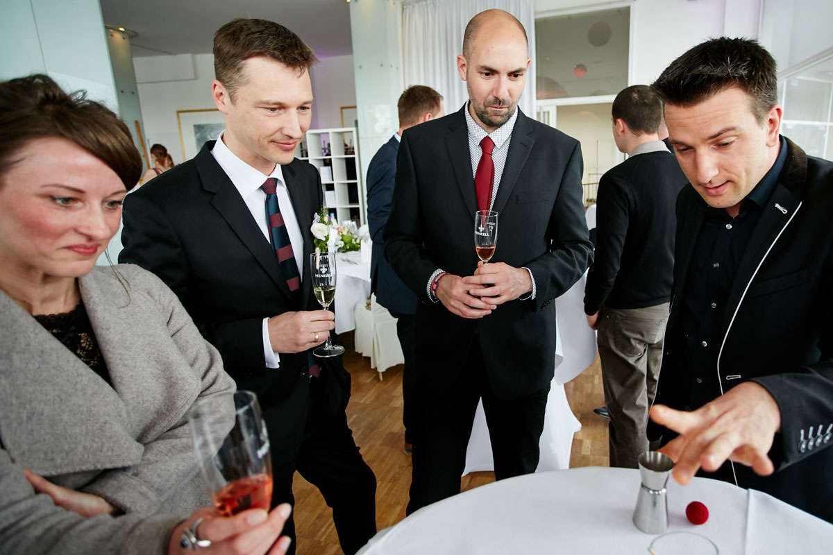 Die Tischzauberei (Close-Up-Zauberei) ist universell einsetzbar. Sogar an Orten, wo es gar keinen Tisch gibt. Ganz bewusst werden die Gäste an den Tischen oder in kleinen Gruppen bezaubert, während sich andere Gäste – sogar in unmittelbarer Umgebung – weiter ungestört unterhalten können. Eine fantastische Möglichkeit, dem Wunsch nach privaten oder geschäftlichen Gesprächen zu entsprechen und gleichzeitig zauberhafte Unterhaltung zu bieten. Es liegt auf der Hand: Damit ist die Close-Up-Zauberei immer eine gute Wahl bei Hochzeitsfeiern und Jubiläen, da sie so flexibel ist und sich auf jede Situation anpassen lässt.