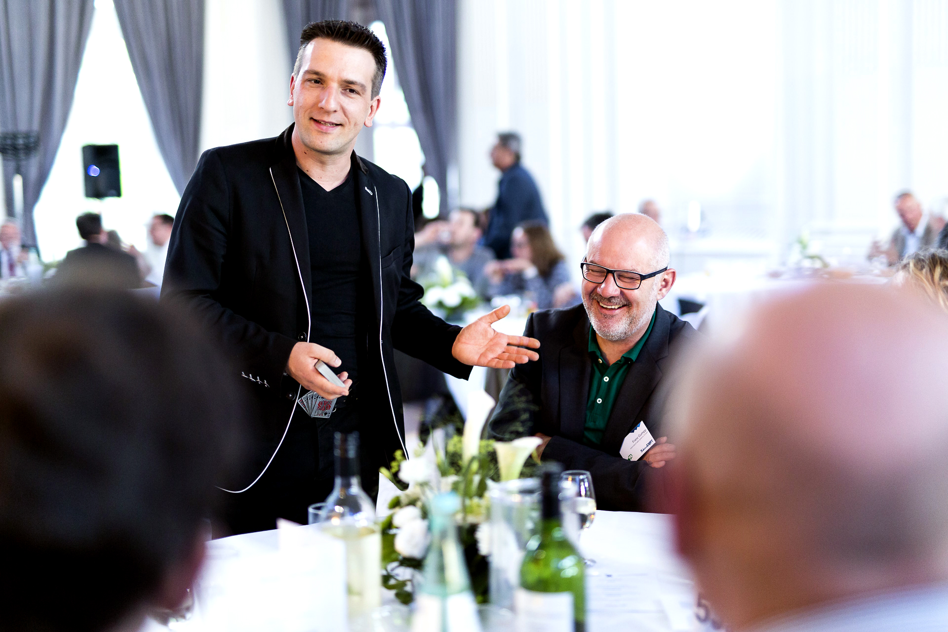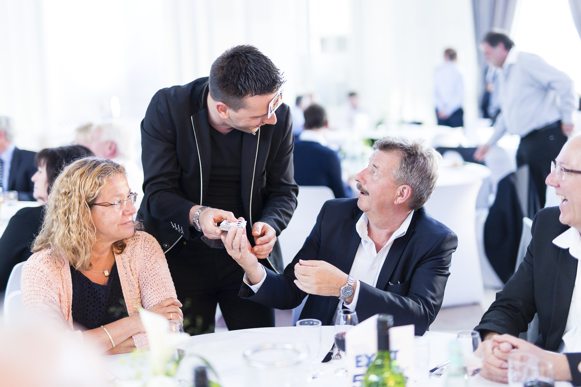 Von der Tischzauberei bis hin zur großen Bühnenshow erhalten Sie immer die passende und liebevolle Unterhaltung. Sogar unvorhersehbare Momente wie die Rede eines Gastes, die Präsentation eines besonderen Geschenkes, aber auch Fehler, die trotz bester Organisation passieren können, kann Stefan Kretschmann bestens in den Ablauf integrieren.